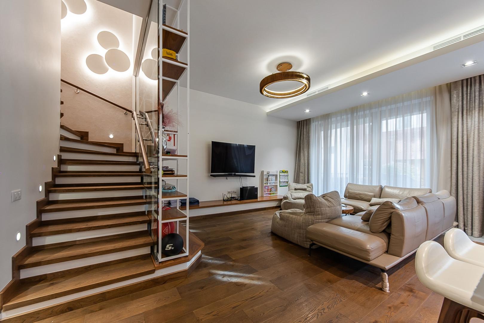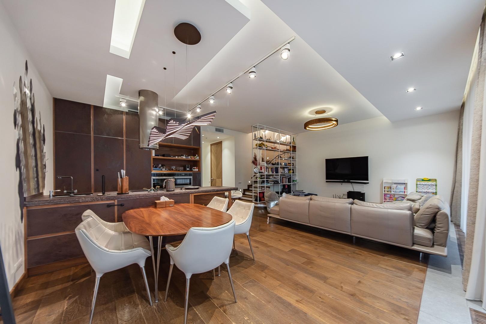 Двухэтажная квартира с выходом во внутренний двор. Современная, стильная, просторная, квартира с дизайнерским, качественным ремонтом. При желании интерьер легко адаптировать под свои вкусы, с минимальными вложениями. Все отделочные материалы, мебель, техника- от ведущих европейский производителей. Установлена Сплит-система. Рациональная, удобная планировка. Общая площадь- 236 м2